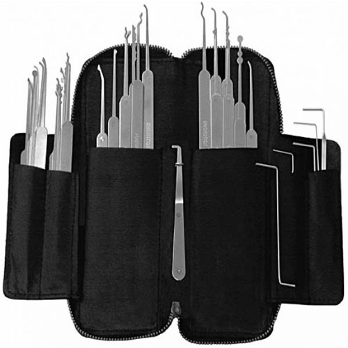 Đối với một người có kinh nghiệm thì việc lock picking bằng vài cái ghim kẹp giấy và một chiếc tuốc nơ vít dẹt là hoàn toàn có thể, tuy nhiên một bộ đồ nghề chuyên nghiệp sẽ khiến công việc trở nên dễ dàng hơn. Một bộ đồ nghề lock picking chuyên nghiệp thường gồm từ 10-20 lock pick khác nhau. Các lock pick này khác nhau về hình dạng phần đầu, để phù hợp với các loại khóa và các kỹ thuật lock picking khác nhau.