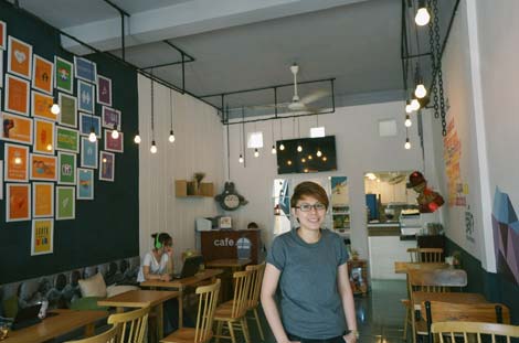Không gian bên trong "No Stress" cafe ngập tràn màu lục sắc - màu biểu tượng cho giới LGBT. |