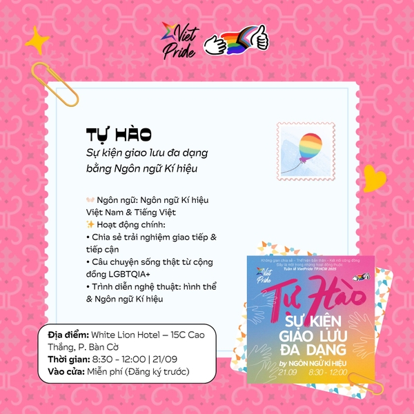 Hashtag: #VietPride2025 , #KếtNối , #TròChuyện , #LGBT , #Pride , #CộngĐồng , #BạnKhôngĐơnĐộc , #ThấuHiểu , #WeAreFamily , #VietPride